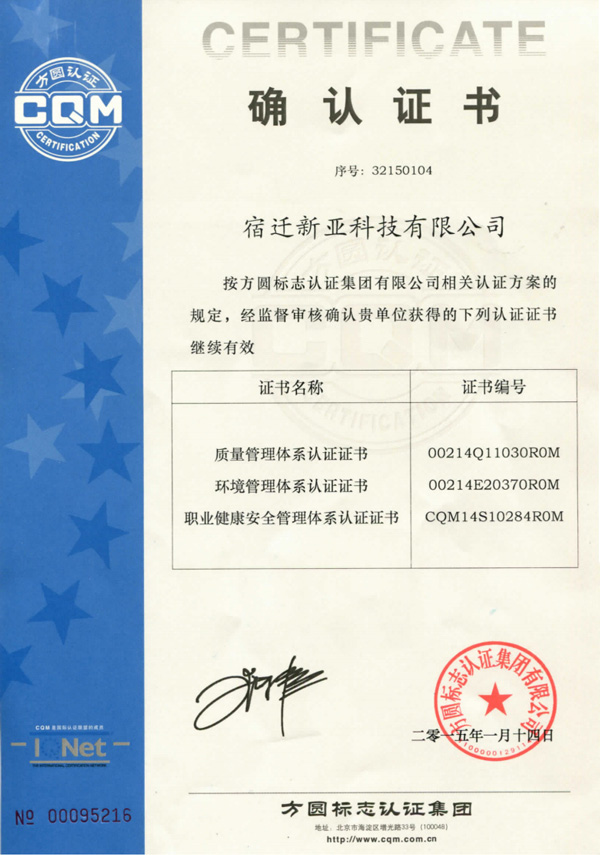 Suqian Xinya Technology Co., Ltd. was founded as Jiangsu Xinya Chemical Co., Ltd (former Wujin Chemical Fertilizer Factory established in 1965). In 2010, Jiangsu Xinya Chemical Co., Ltd was moved into Suqian city of Jiangsu province and became Suqian Xinya Technology Co., Ltd.. Suqian Xinya Technology Co., Ltd. has the all equipment and technicians of Jiangsu Xinya Chemical Co., Ltd, and the leading production idea of Jiangsu Xinya Chemical Co., Ltd too...